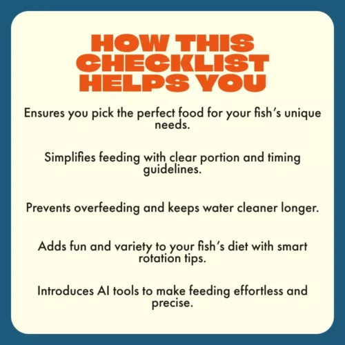 This checklist is ideal for new fish keepers, aquarium hobbyists, or anyone unsure about feeding their fish the right way. It’s especially useful if you’re overwhelmed by all the food choices and want a straightforward, reliable guide to the best fish food for beginners.