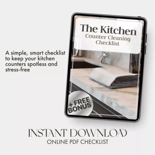 It’s time to transform your countertops into the clutter-free haven you deserve. Download The Kitchen Counter Cleaning Checklist today, print it instantly, and start enjoying the calm, organized kitchen you’ve always wanted. Your cleaner, happier home begins right here — one simple checklist away.