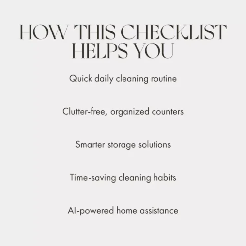 This checklist is ideal for anyone who wants a cleaner, calmer kitchen — whether you’re decluttering for the first time, trying to build better habits, or simply searching for how to keep your kitchen counters clear once and for all. It’s especially useful for busy parents, minimalists, and anyone who feels overwhelmed by daily messes.