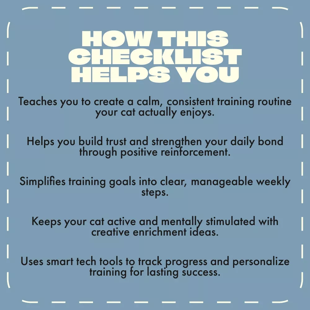 Make every week count in your cat’s development journey. Download The Weekly Cat Training Routine Checklist today and begin building the bond, trust, and behavior you’ve always wanted — one paw at a time!