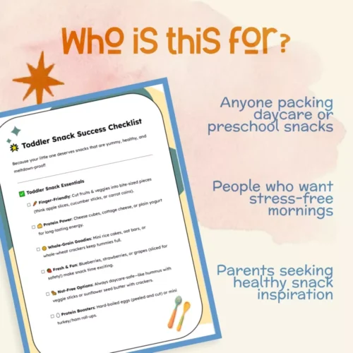 Transform the way you plan, prep, and pack snacks with this must-have digital checklist. Download the Toddler Snack Success Checklist today and enjoy confident, happy mornings—and even happier toddlers! Click “Add to Cart” to get your instant download and start packing smarter snacks today.