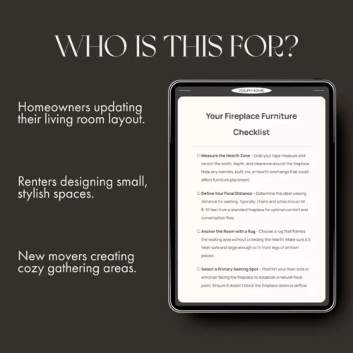 This digital checklist is perfect for homeowners, renters, decorators, and DIY design lovers who want to bring harmony and warmth to their living rooms. Whether your style is modern, rustic, or traditional, this resource adapts to your unique layout and fireplace type.