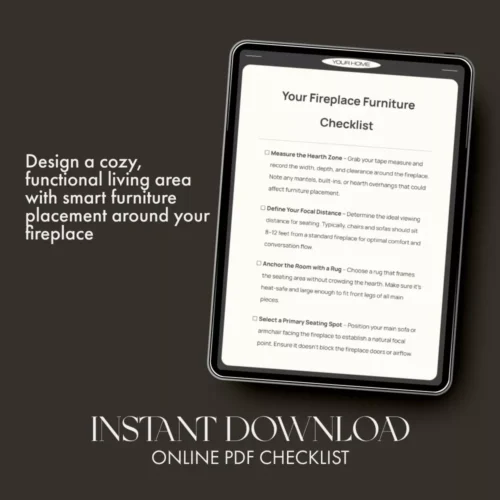 Warm, inviting, and effortlessly balanced — that’s the magic of a well-arranged fireplace setup. Your Fireplace Furniture Checklist is a comprehensive, step-by-step digital guide designed to help you master how to arrange furniture around a fireplace with both comfort and style. Whether you’re decorating a new space or refreshing your current layout, this printable checklist gives you everything you need to create a cozy, functional, and conversation-friendly room centered around your hearth.