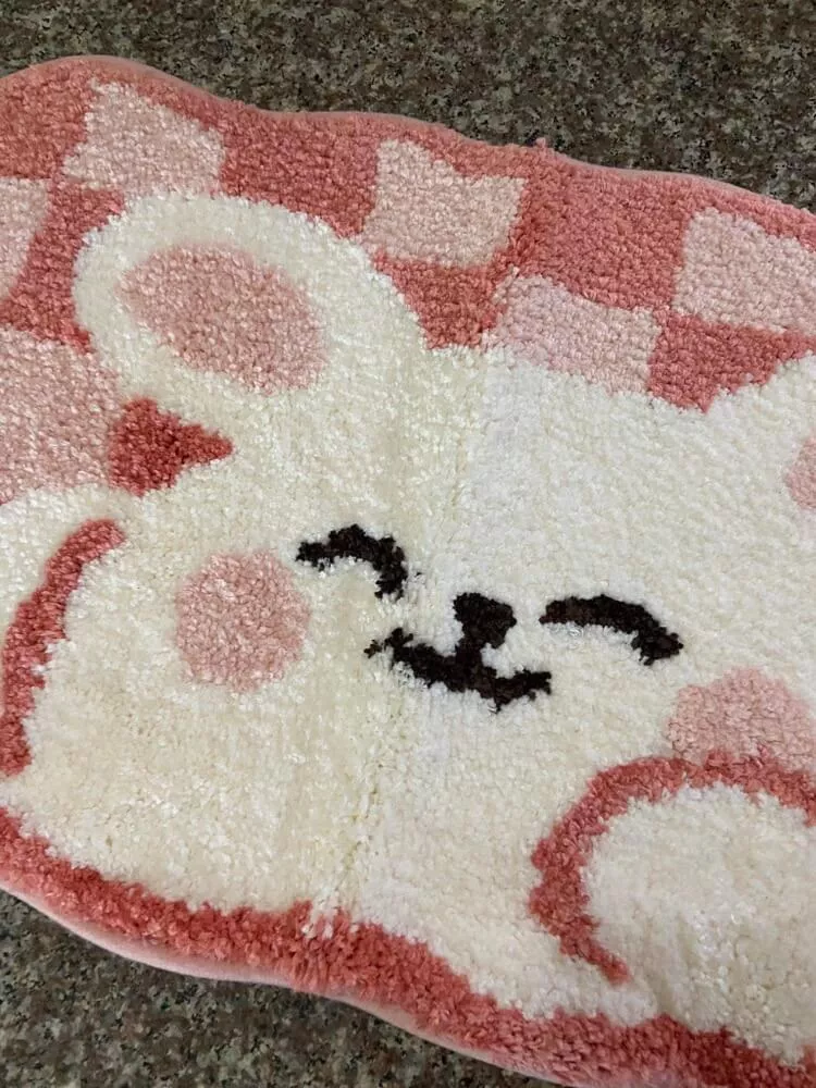 The rug's softness is truly impressive, and I've encountered no issues with shedding. It feels like something you might find at a high-end home goods store. The only minor quibble is the mat's tall fibers, which can occasionally distort the cartoon character's face, adding a whimsical touch. The grip could be slightly better, as I find myself repositioning the mat daily. Nonetheless, tending to this cute mat has become a cherished evening routine.