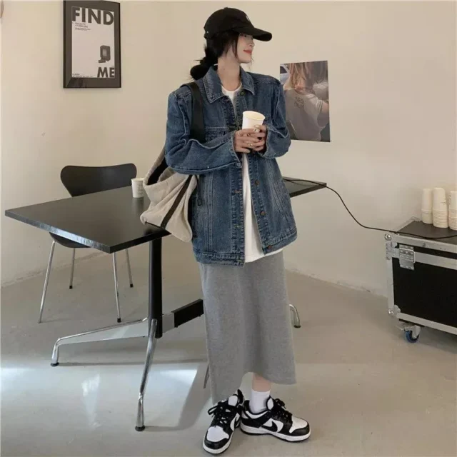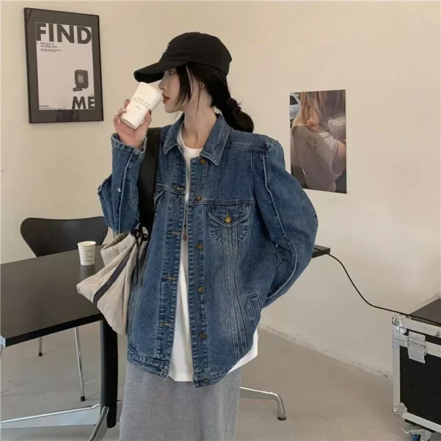 Embrace the essence of spring with a fusion of vintage charm and modern Korean fashion. Our Vintage Denim Mid-Length Jacket is your perfect companion for transitioning seamlessly through the seasons. Designed with a keen eye for style and a nod to the effortless ‘Salt Style’ aesthetic, this jacket is more than just an item of clothing—it’s a statement of personal style.
