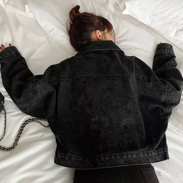 Introducing the ultimate statement piece that belongs in every fashion-forward woman’s wardrobe: the Women’s Black Cropped Denim Jacket. This jacket perfectly marries the casual cool of denim with the edgy flair of Korean streetwear. Designed to be versatile, this all-season staple adds a touch of sophistication to any outfit, whether you’re dressing for a day out with friends or seeking that perfect transitional piece for seasonal shifts.